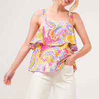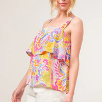 Meet a bohemian-inspired staple designed for everyday wear and weekend adventures—the And The Why Square Neck Tiered Paisley Printed Top. Its structured square neckline and tiered silhouette offer a flattering, versatile look that transitions from casual to dressy with ease.