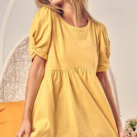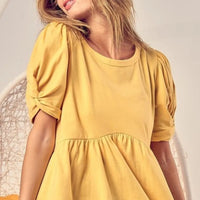 The BiBi Cotton Span Knit with Puff Sleeve Baby Doll Top blends feminine detail with everyday versatility. Crafted in a comfortable cotton span knit, it pairs a flattering baby-doll silhouette with playful puff sleeves for an effortlessly chic look.