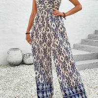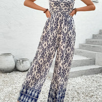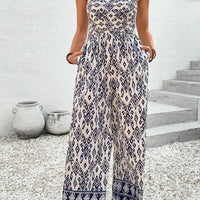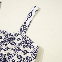 The Bohemian Print Wide Leg Jumpsuit brings a carefree boho vibe to a one-piece silhouette, perfect for warm days and easy styling. With a smocked bodice and flowing wide legs, it delivers comfort without sacrificing style.