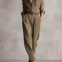 The Button Front Long Sleeve Jumpsuit is a versatile, one-piece solution designed for easy styling and practical wear. Built for everyday comfort and simple elegance, it transitions from casual days to relaxed evenings with minimal effort.