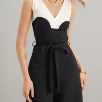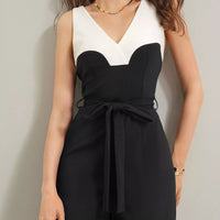 Designed for real-life styling, this jumpsuit offers versatility for a range of occasions. The color-block design adds visual interest, while the waist tie lets you customize shading and shape without compromising comfort. The stretch fabric moves with you—whether you’re navigating a busy workday, attending a brunch, or dialing up the polish for a night out. Pair with statement jewelry and heels to elevate the look, or dress down with flats for a effortless daytime vibe.
