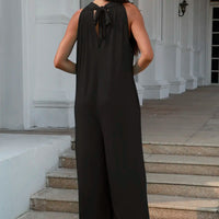 Double Take Tie Back Cutout Sleeveless Jumpsuit For Women Full Size Chic Flattering