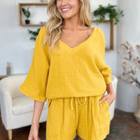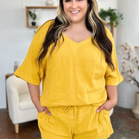 Double Take Texture Half Sleeve T-Shirt and Drawstring Shorts Set
