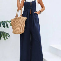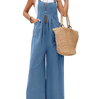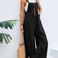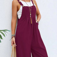 Square Neck Wide Strap Overalls For Women Full Size With Pockets And Machine Washable