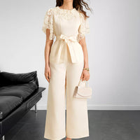 A versatile Lace Trim Belted Wide Leg Jumpsuit designed for those who want polished, effortless style in a single piece. With delicate lace trim, a belted waist, and a sweeping wide-leg silhouette, it flatters a range of body types for everyday wear and special occasions.