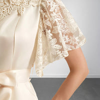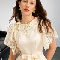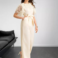 Design details: Lace trim adds a feminine touch; belt at the waist creates definition; wide-leg silhouette for modern movement.