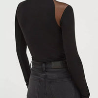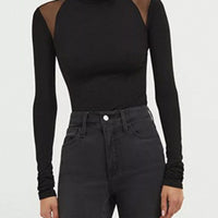 Elevate your wardrobe with the Mesh Shoulder Turtleneck Bodysuit—a sleek, fashion-forward piece designed for versatile wear, from layered looks to standout evenings.