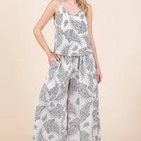 Two-Piece Set: Includes a paisley print cami top and matching pants for a polished, ready-to-wear look.