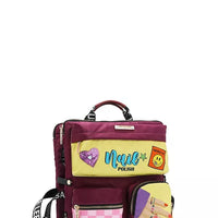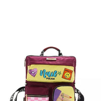 Striking design: Front panel features tropical palm tree graphics paired with retro travel patches for a truly unique vintage appeal.