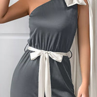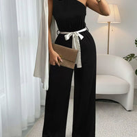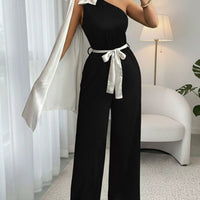 One Shoulder Bowknot Wide Leg Jumpsuit For Women Belted Chic And Elegant Party Wear