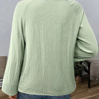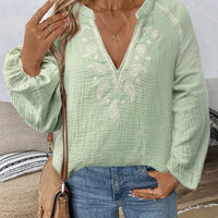 Notched Design: Subtle notched neckline detail enhances the blouse’s tailored, refined feel.