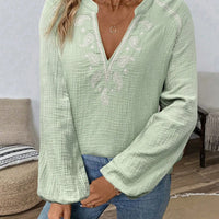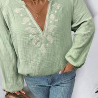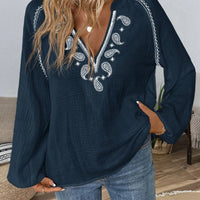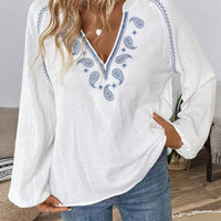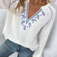 The Paisley Pattern Notched Long Sleeve Blouse is a breathable, 100% cotton top designed for everyday wear with a timeless print and a polished silhouette. Ideal for those who want a versatile blouse that transitions from work to weekend with ease.