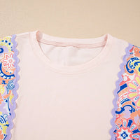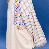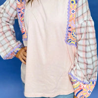 Paisley Print Plaid Long Sleeve Oversized Top