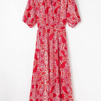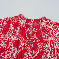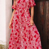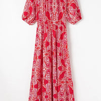 Paisley Print Side Slit Puff Sleeve High Waist Maxi Dress