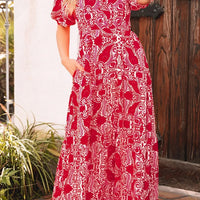 The Paisley Print Side Slit Puff Sleeve High Waist Maxi Dress offers timeless sophistication with a modern silhouette. It’s designed for women who want versatile, elegant style that transitions from day to night with ease.