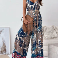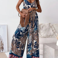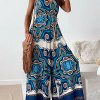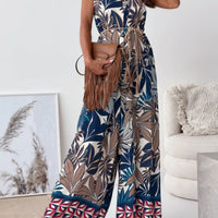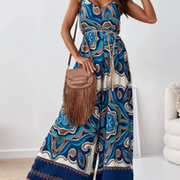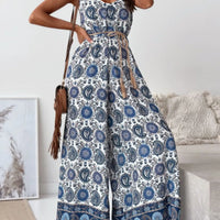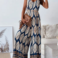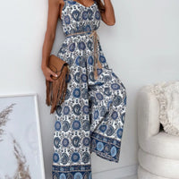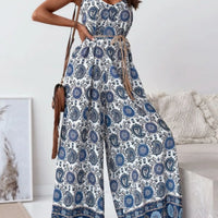 Paisley Print Spaghetti Strap Wide Leg Jumpsuit