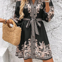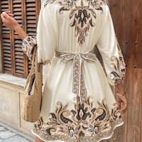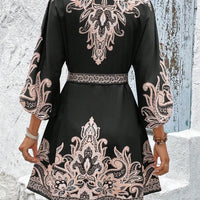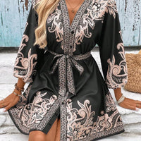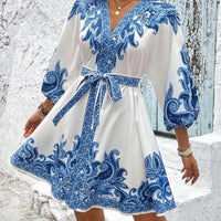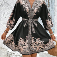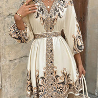 Paisley V-Neck 3/4 Sleeve Mini Dress
