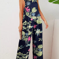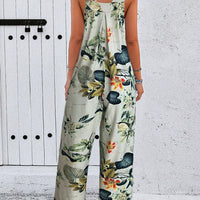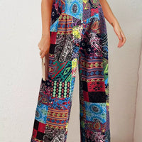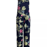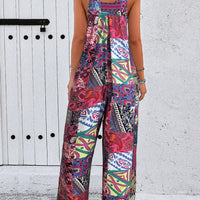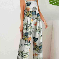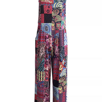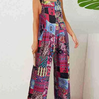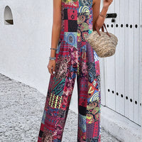 Plus Size Printed Wide Leg Jumpsuit With Pockets For Women Polyester Flattering Fit