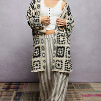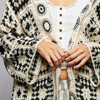 The POL Open Front Crochet Cardigan with Granny Square Pattern is a lightweight layering piece that blends vintage charm with modern ease. This 3/4-sleeve cardigan is perfect for versatile styling—from casual days to dressed-up events.
