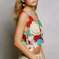 The POL Openwork Floral Cropped Crochet Cami is a hand-made sleeveless top that blends intricate openwork crochet with a flattering heart neckline, designed for anyone who loves artisanal detail in warm-weather outfits.