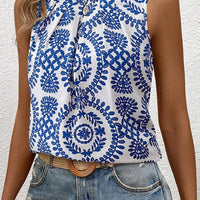 Printed Crew Neck Sleeveless Top