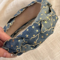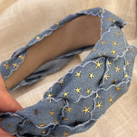 Designed for everyday versatility, this headband stays comfortably in place without slipping, making it ideal for busy mornings, travel days, or quick styling fixes. The star braided texture adds a touch of personality to outfits, whether you’re pairing it with a casual tee and jeans or a breezy summer dress. The washed finish keeps the denim look relaxed and stylish, ready to elevate your go-to outfits with minimal effort.
