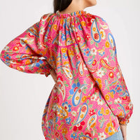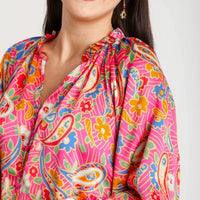 - Print & Color: Bold paisley in hot pink, orange, blue, and multi-color tones for standout style.