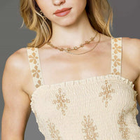 This Umgee smocked printed wide-leg jumpsuit blends feminine floral charm with effortless sophistication, perfect for spring and summer events. Designed for versatility, it easily moves from casual days to dressier evenings with a simple change of footwear.
