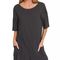 Meet the Zenana V or Scoop Neck Reversible 2-Way Romper—a versatile, all-in-one piece designed for everyday wear and evenings out. With two neck options in one garment, it adapts to your style without extra pieces.