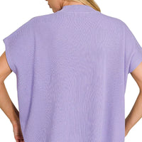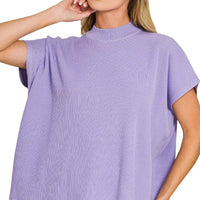A lightweight, breathable pullover with a mock neck and short sleeves, designed for everyday wear and easy layering in a chic lavender shade.